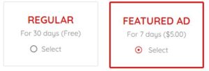 - At the bottom of the submit ad page, select “Featured Ad” from the Ad Post Type: